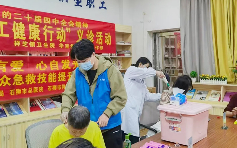 下午15時(shí)起,職工們陸續(xù)來(lái)到義診區(qū)域。祥芝鎮(zhèn)衛(wèi)生院專業(yè)醫(yī)護(hù)團(tuán)隊(duì)耐心接診,為職工提供中醫(yī)拔罐、艾灸調(diào)理等項(xiàng)目,并開(kāi)展職工專項(xiàng)篩查服務(wù)和醫(yī)療科普。許多職工表示:“平時(shí)工作忙,很少專門去醫(yī)院檢查,這樣的活動(dòng)太貼心了!”