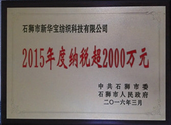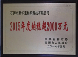 2015年納稅超2000萬元