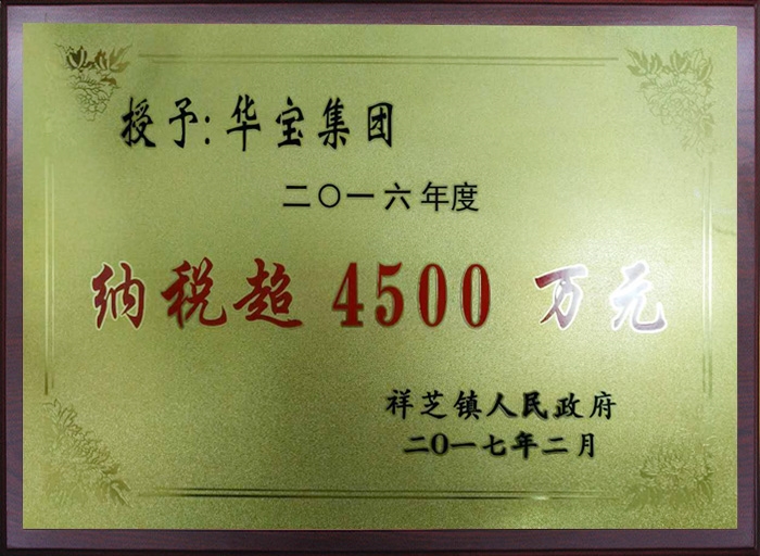 2016年納稅超4500萬元