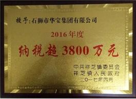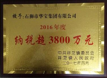 2016年納稅超3800萬元