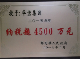 2015年納稅超4500萬元